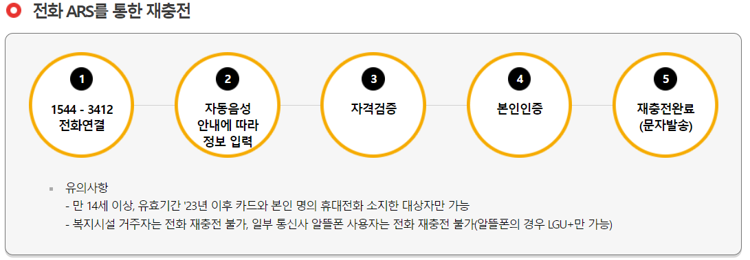 아래 안내처럼 전화 ARS를 통한 재충전 프로세스 확인하고 제외 대상자도 꼭 확인하여 혜택에서 제외되는 일이 없어야 함